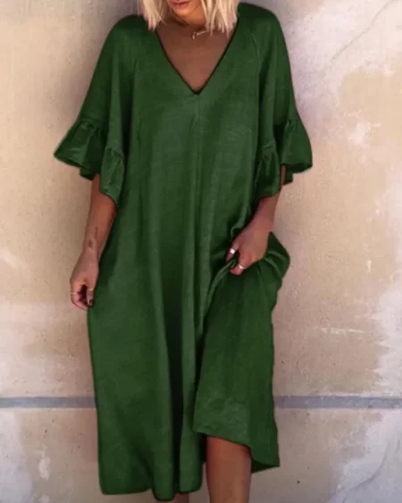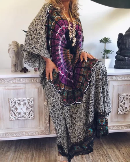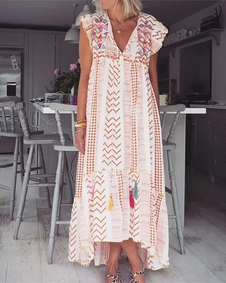 Be the first to review “Bohemian Geometric Print Flared Sleeve Casual Maxi Dress”